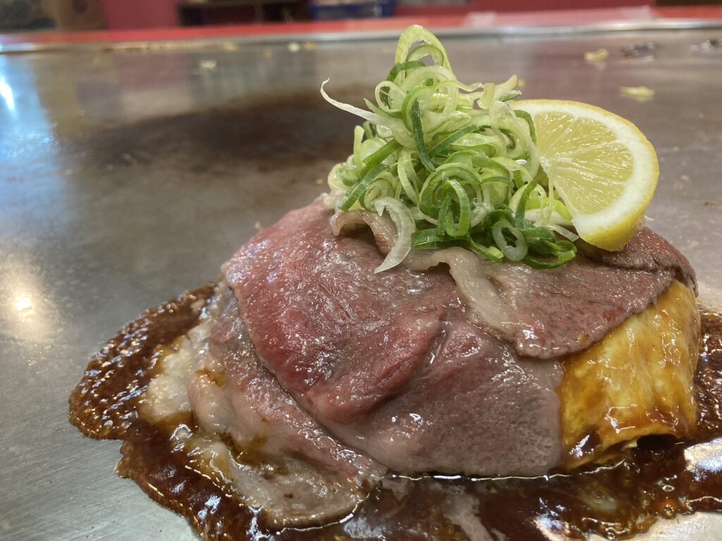 鉄板焼屋ならではの、カリカリでトロトロのチーズを肉玉にのせました! 男女問わず大人気! 見ちゃうとつい食べたくなりますよ?