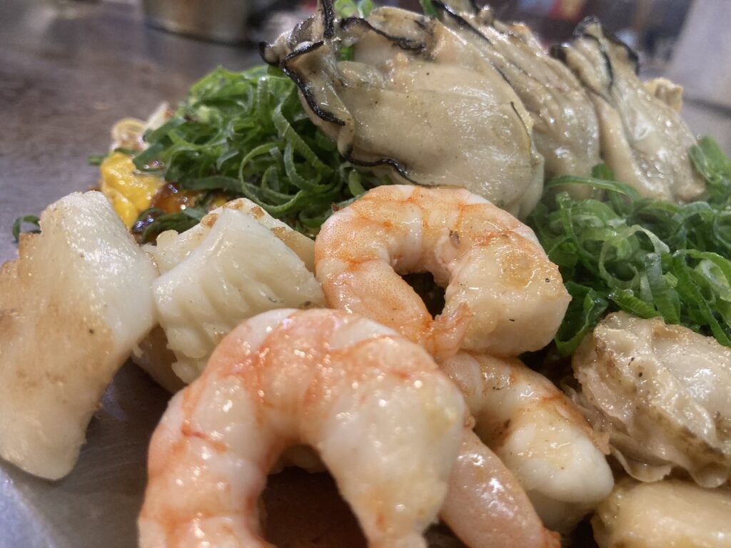 カキ、エビ、ホタテ、イカをふんだんに盛らせて頂くせいたくな1枚! 海外のお客様から絶大な支持を頂いております!